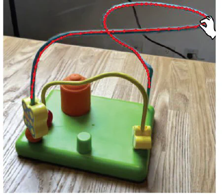 Physics simulation of slender elastic objects often requires discretization as a polyline. However, constructing a polyline from Gaussian splatting is challenging as Gaussian splatting lacks connectivity information and the configuration of Gaussian primitives contains much noise. This paper presents a method to extract a polyline representation of the slender part of the objects in a Gaussian splatting scene from the user’s sketching input. Our method robustly constructs a polyline mesh that represents the slender parts using the screen-space shortest path analysis that can be efficiently solved using dynamic programming. We demonstrate the effectiveness of our approach in several in-the-wild examples.